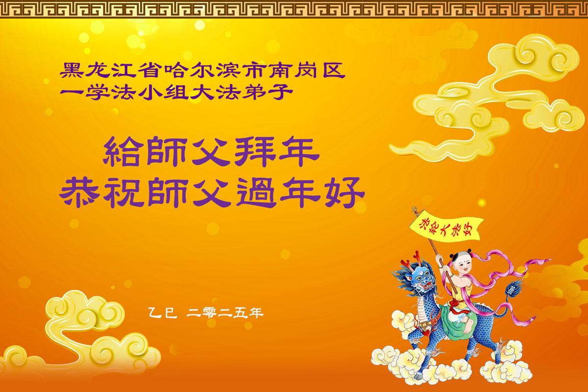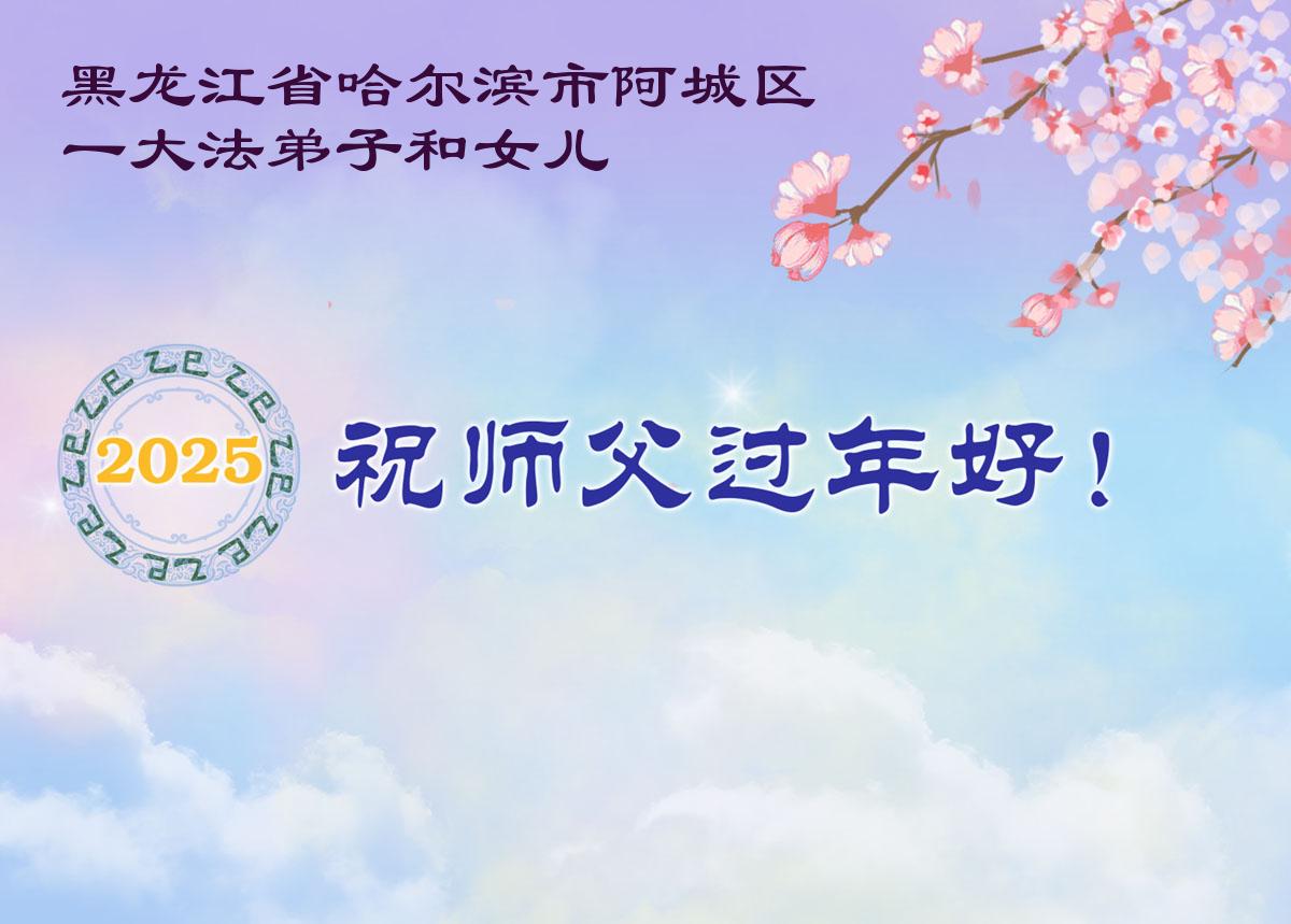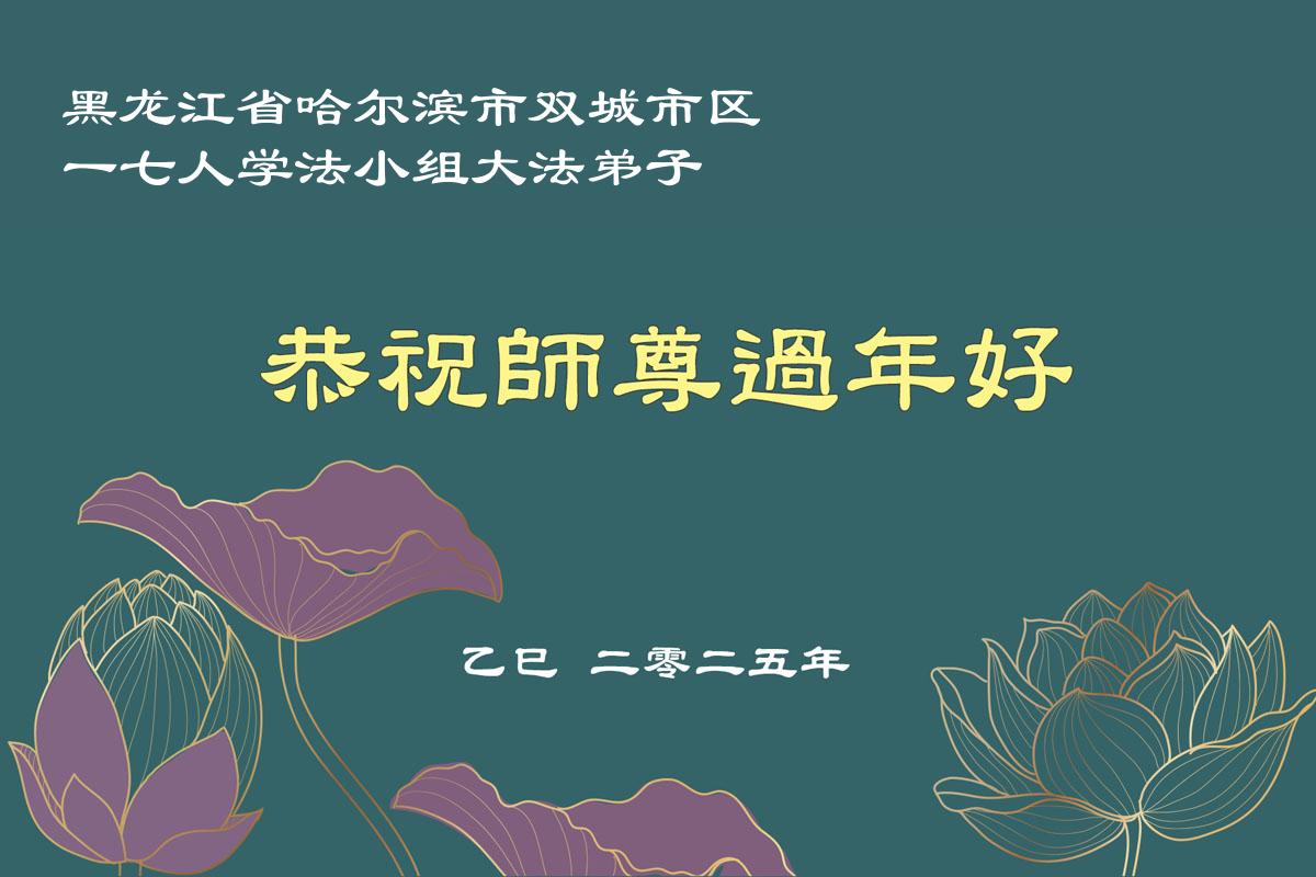 【明慧网二零二五年一月二十九日】 黑龙江省哈尔滨市南岗区一学法小组大法弟子恭祝伟大的师尊过年好!