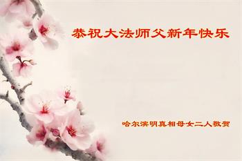 黑龙江省哈尔滨市阿城区一大法弟子和女儿恭祝师尊过年好!