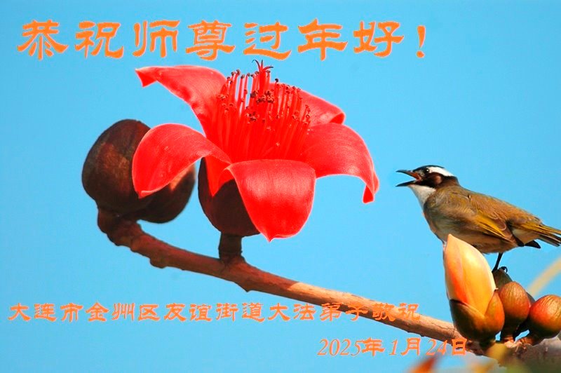 【明慧网二零二五年一月二十九日】 辽宁省大连市一大法弟子及全家恭祝师尊过年好!