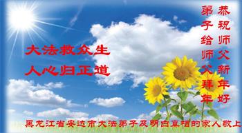 黑龙江省绥化市安达市大法弟子及明白真相的家人恭祝师尊新年快乐!