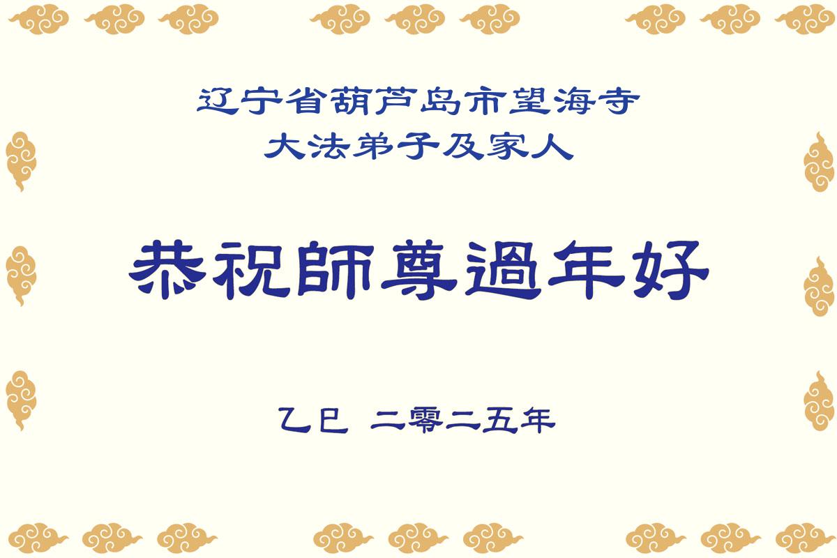 感谢您,我们天天诚念“法轮大法好!真善忍好!”谢谢师尊。 辽宁省葫芦岛市望海寺大法弟子及家人恭祝师父新年好!