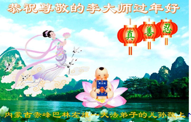 恭祝李大师新年好! 内蒙古赤峰巴林左旗一大法弟子的儿、孙敬上 北京昌平大法弟子的一位朋友恭祝李大师新年快乐!
