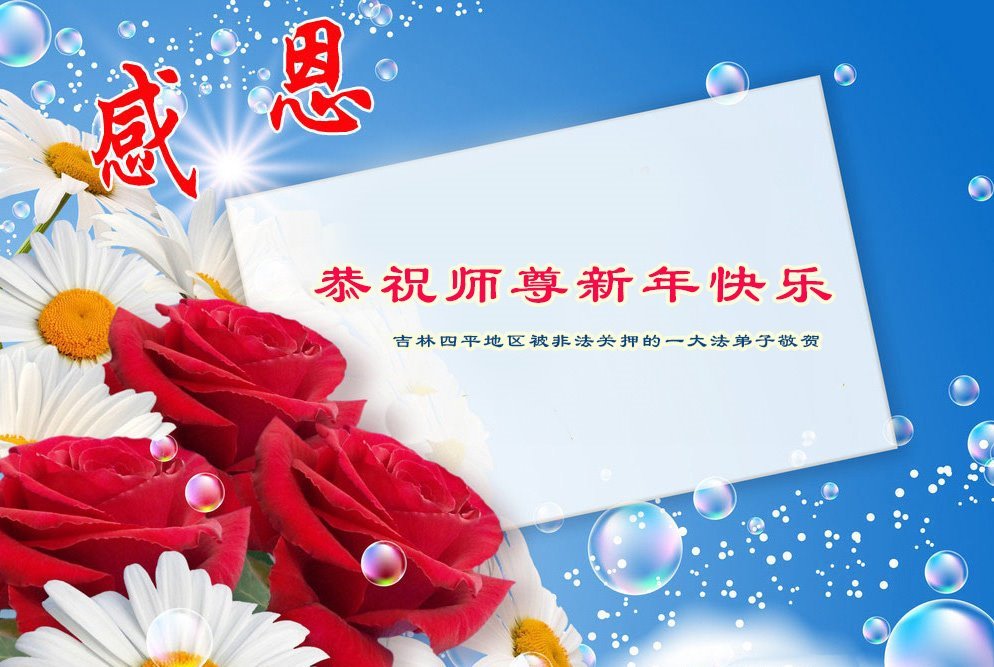 恭祝慈悲伟大的师尊新年快乐! 江苏省连云港市被非法关押的大法弟子敬上 吉林四平地区被非法关押的大法弟子恭祝师尊新年快乐!