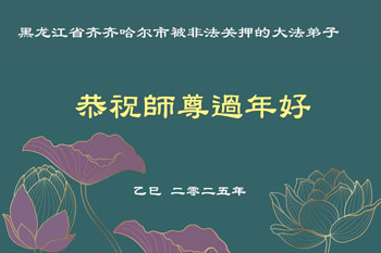 恭祝师父新年好!师父新年快乐! 上海市被非法关押的大法弟子敬上 二零二五年一月十二日 黑龙江省齐齐哈尔市被非法关押的大法弟子恭祝师父新年好!