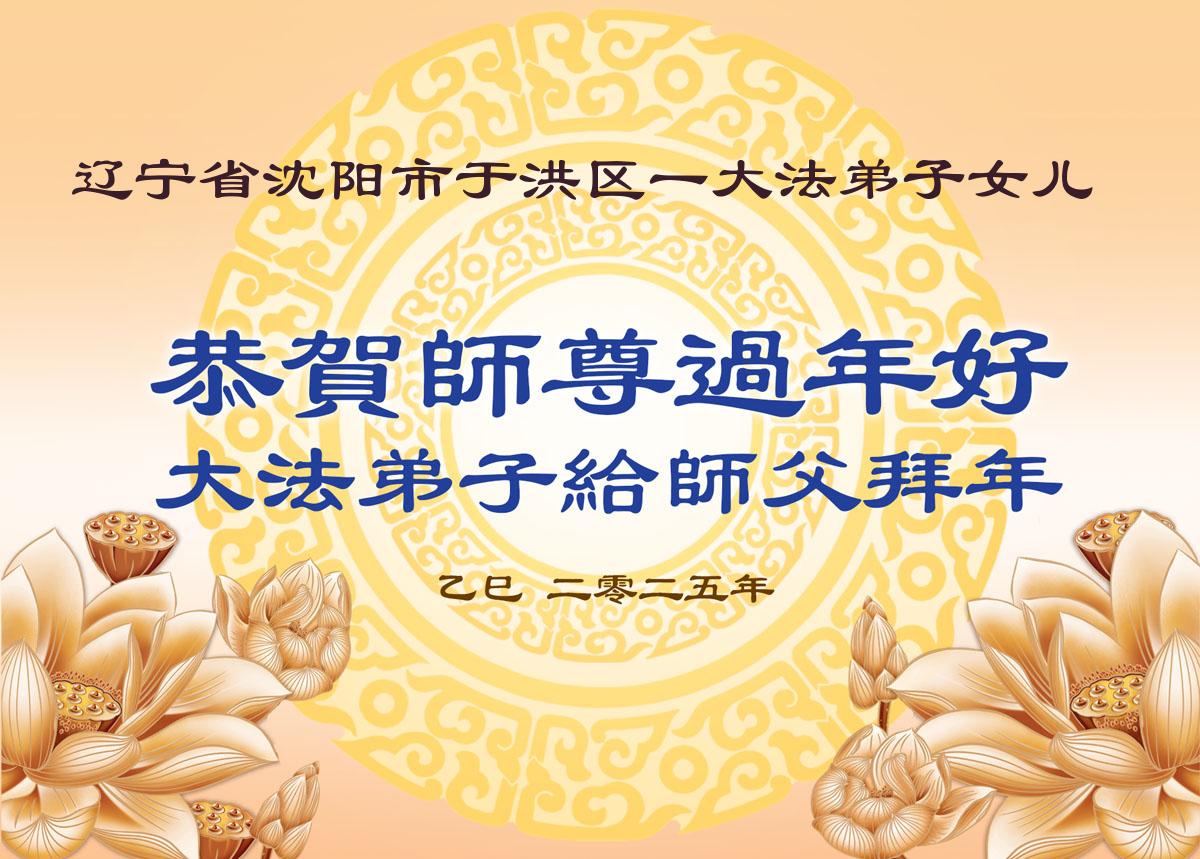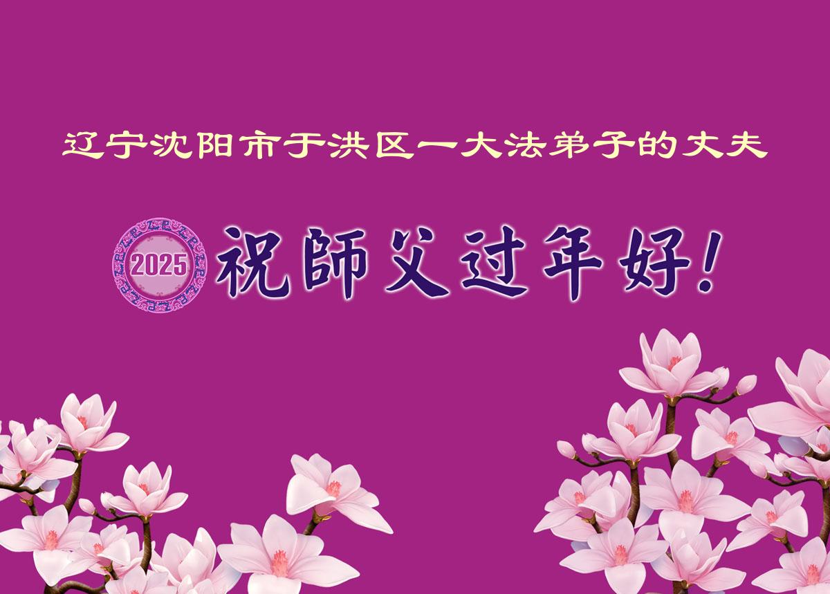 弟子给师尊拜年!恭祝师尊过年好! 感恩师尊为弟子所承受的一切!感恩师尊的浩荡洪恩!跪拜谢师尊! 辽宁省沈阳市辽中区大法弟子敬上 二零二五年一月二十一日 辽宁沈阳市于洪区—大法弟子丈夫恭祝师尊新年快乐!