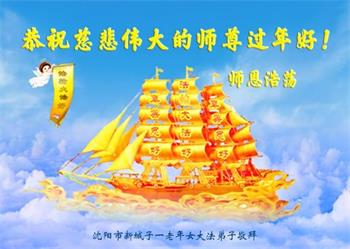 辽宁省沈阳市沈北新区新城子一夫妻大法弟子恭祝师父过年好!