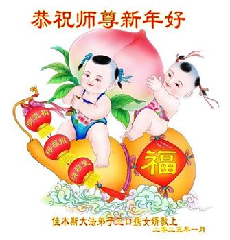 恭祝师尊新年快乐! 黑龙江佳木斯一兄妹大法弟子及家人敬上 黑龙江佳木斯大法弟子恭祝师尊新年快乐!