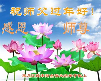 恭祝师尊新年快乐! 黑龙江佳木斯一大法弟子携家人敬上 黑龙江省佳木斯市俩大法弟子恭祝师父新年快乐!