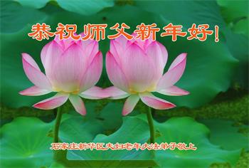 恭祝慈悲伟大的师尊新年好!师尊新年快乐! 山东省胜利油田大法弟子敬上 河北省石家庄新华区夫妇老年大法弟子恭祝师尊新年快乐!