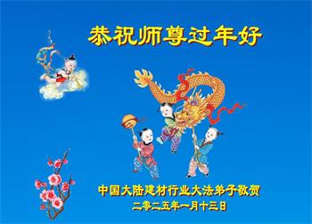 中国大陆建材行业大法弟子恭祝慈悲伟大的师尊过年好!