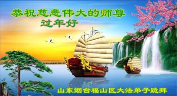 恭祝师尊新年好! 山东省烟台市福山区一学法小组大法弟子敬上 山东省烟台市福山区一大法弟子恭祝师尊新年好!