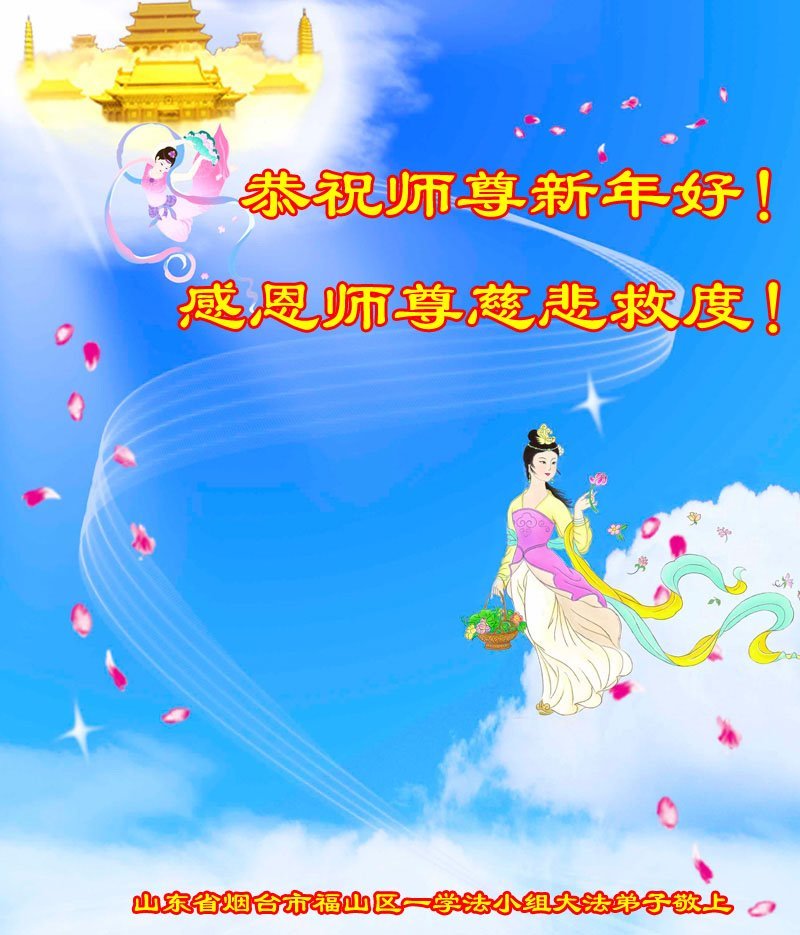 恭祝师尊新年好! 山东省烟台市福山区一学法小组大法弟子敬上 山东省烟台市福山区一学法小组大法弟子恭祝师尊新年好!