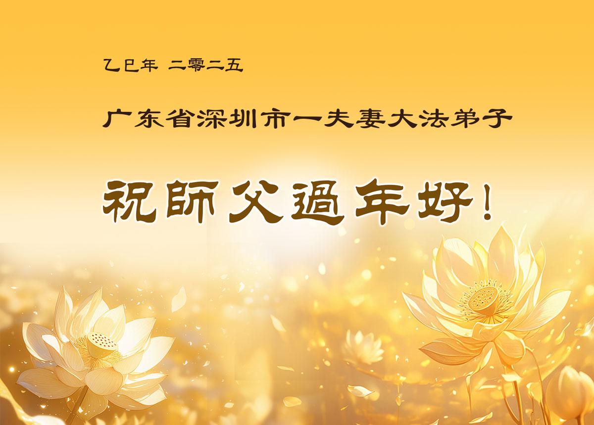 恭祝师尊新年快乐! 广东省一大法弟子叩拜 二零二五年一月二十三日 广东省深圳市一夫妻大法弟子恭祝师父新年好!