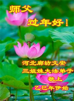河北廊坊文安三姐妹大法弟子恭祝师父过年好!