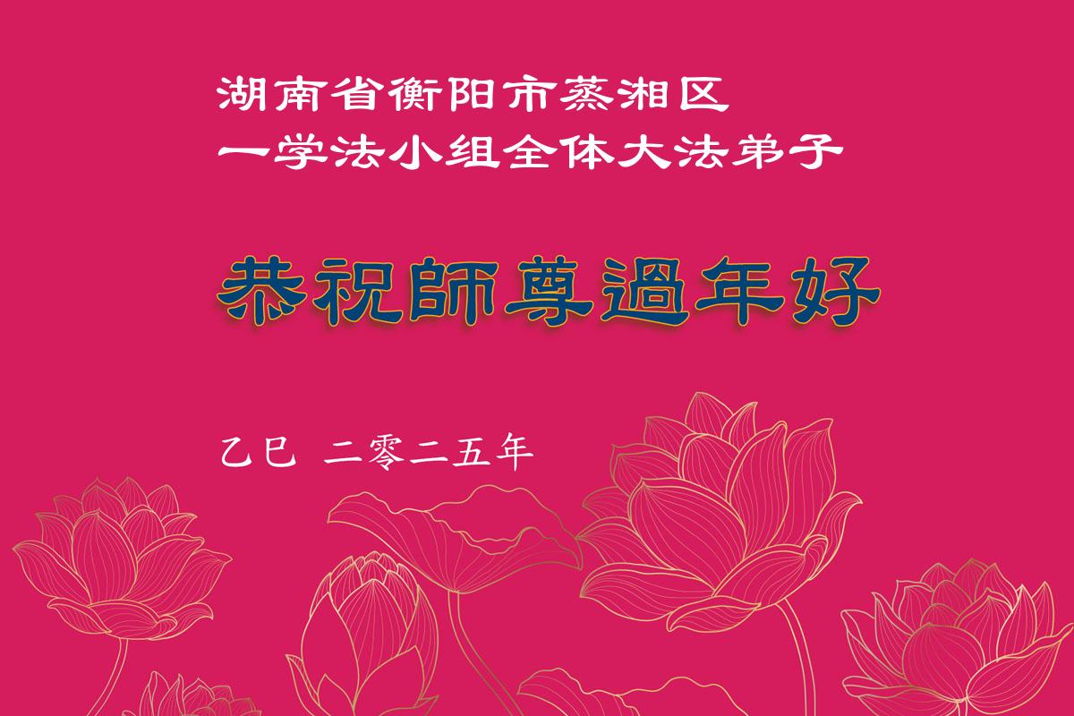 感恩师尊无量慈悲救度洪恩!弟子们会不断精進,做好三件事,走好最后的路,跟师尊回家。 湖南省衡阳市蒸湘区一学法小组全体大法弟子恭祝师父新年快乐!