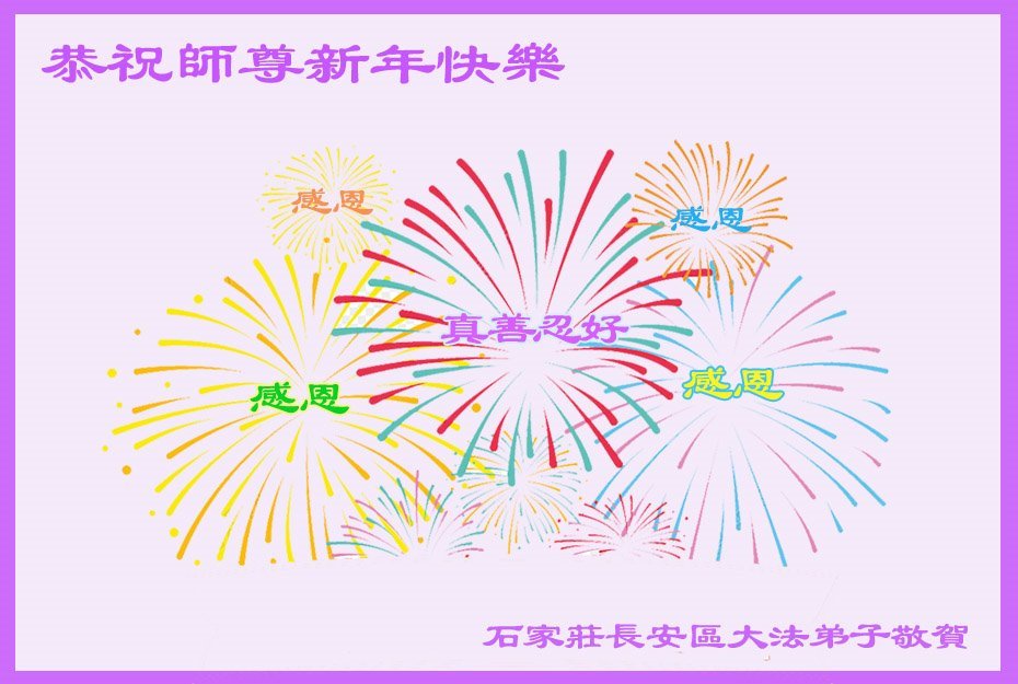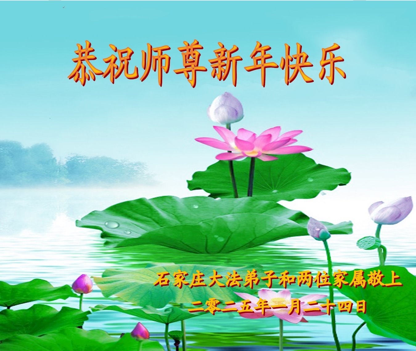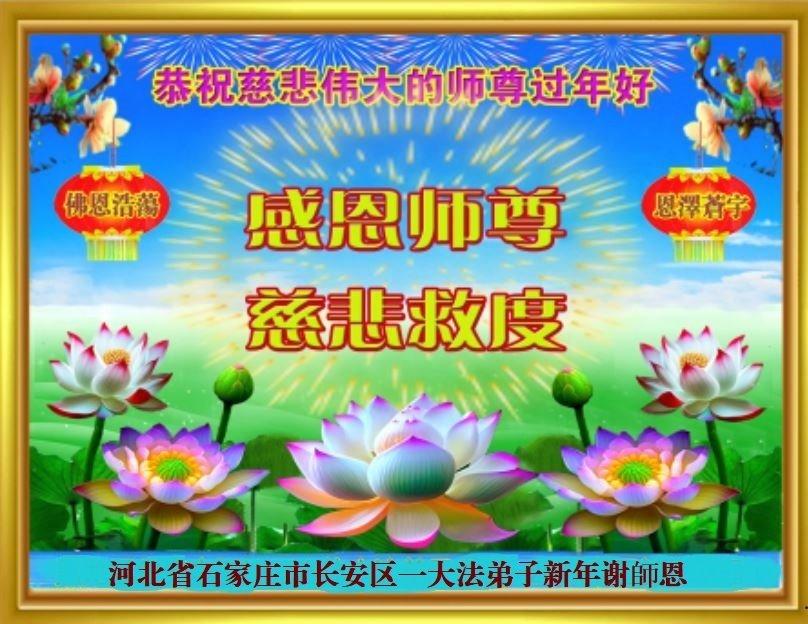 师尊过年好!师尊辛苦了!弟子全家人叩拜师尊,感恩师尊的慈悲救度! 河北省石家庄市大法弟子敬上 河北省石家庄大法弟子给师尊拜年!