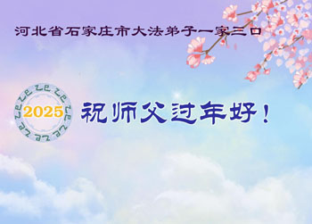 【明慧网二零二五年一月三十日】 河北省石家庄市辛集市一大法弟子携全家恭祝慈悲伟大的师尊过年好!