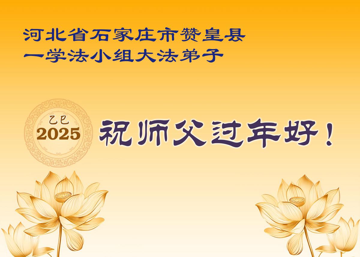 恭祝师父过年好! 师父辛苦了!弟子们会精進实修,助师救人,不辱使命。 河北省赞皇县一学法小组大法弟子叩拜 二零二五年一月二十四日 河北省石家庄市长安区大法弟子恭祝师尊新年好!
