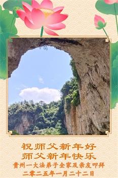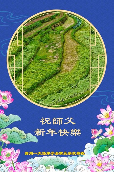 敬祝师父过年好! 贵州大法弟子敬上 贵州一大法弟子全家及亲友恭祝师尊新年好!