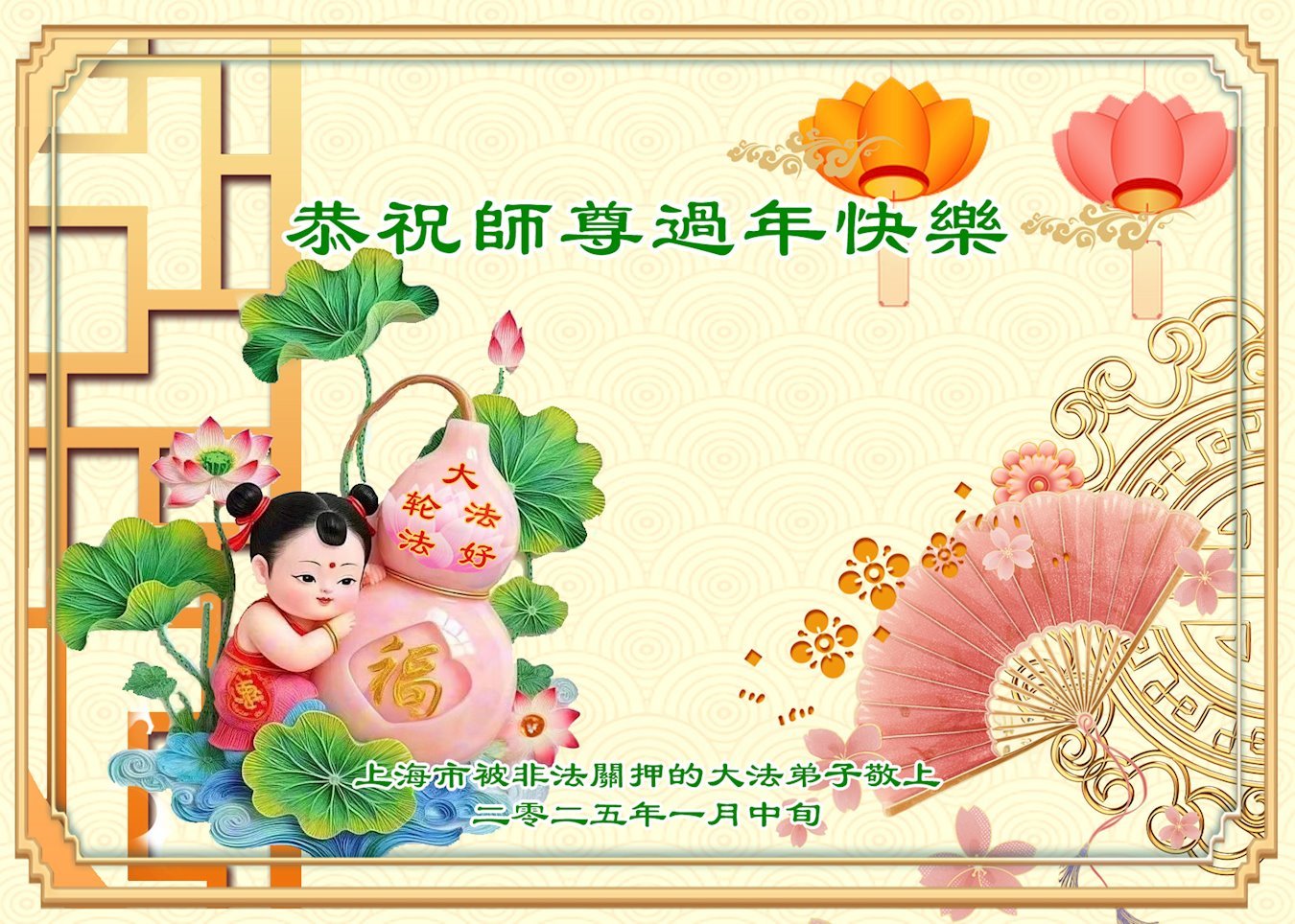 师尊好!恭祝慈悲伟大的师尊过年好!法轮大法好!真善忍好!叩拜恩师! 上海市被非法关押的大法弟子敬上 河北石家庄市被非法关押在监狱的大法弟子恭祝师父过年好!