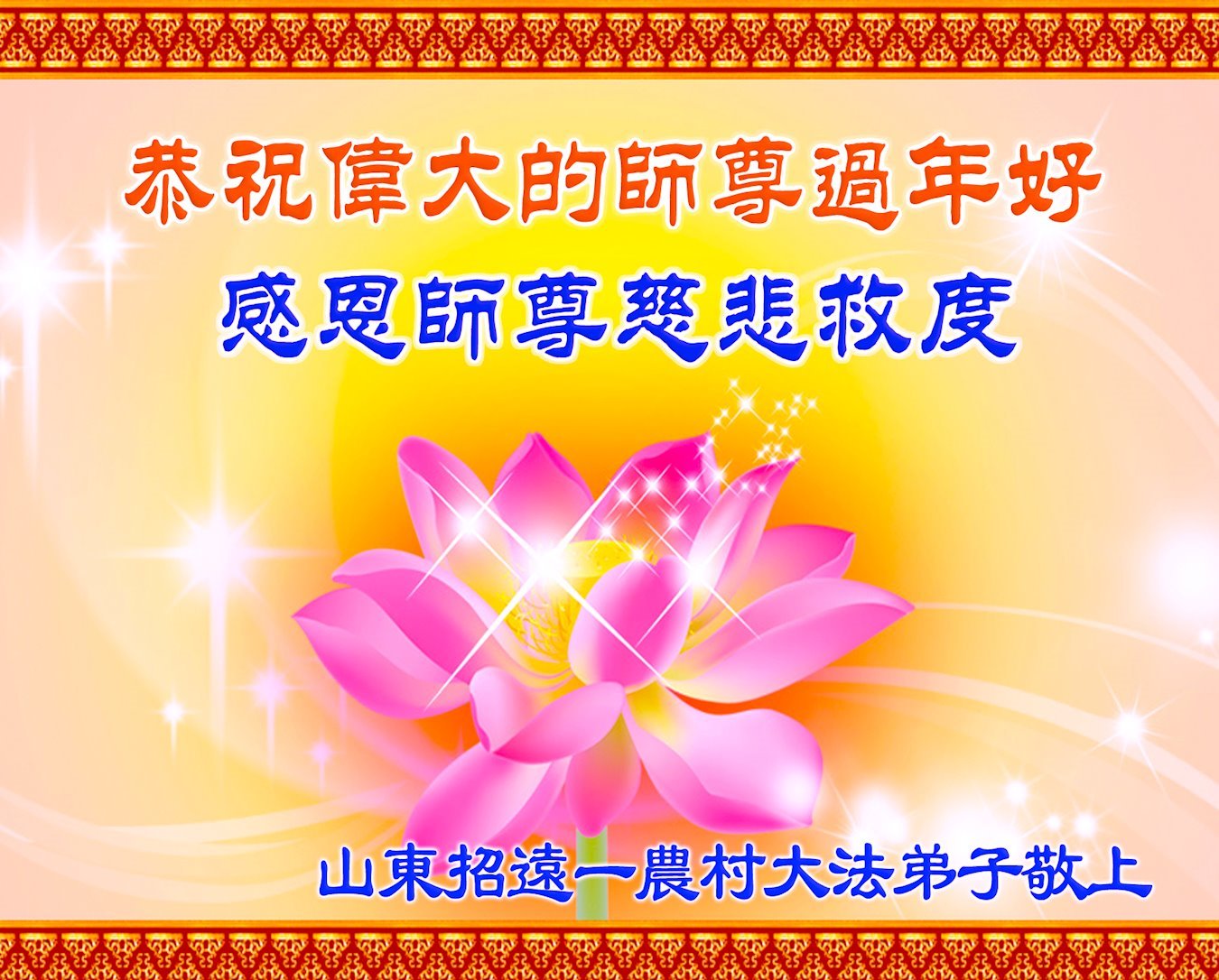 弟子恭祝伟大的师尊过年好!谢谢师尊对弟子的加持和保护,使弟子一直走在助师正法的修炼路上。在师父正法進入尾声的今天,弟子尽最大的能力做好三件事,兑现誓约,返本归真,跟师父回家。 山东省烟台市招远市一农村大法弟子敬上 山东省潍坊市诸城市农村大法弟子恭祝师尊过年好!