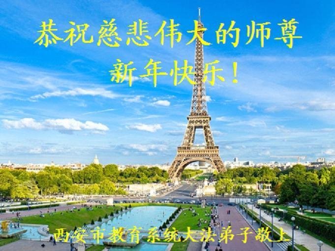 陕西省西安市教育系统大法弟子恭祝慈悲伟大的师尊新年快乐!