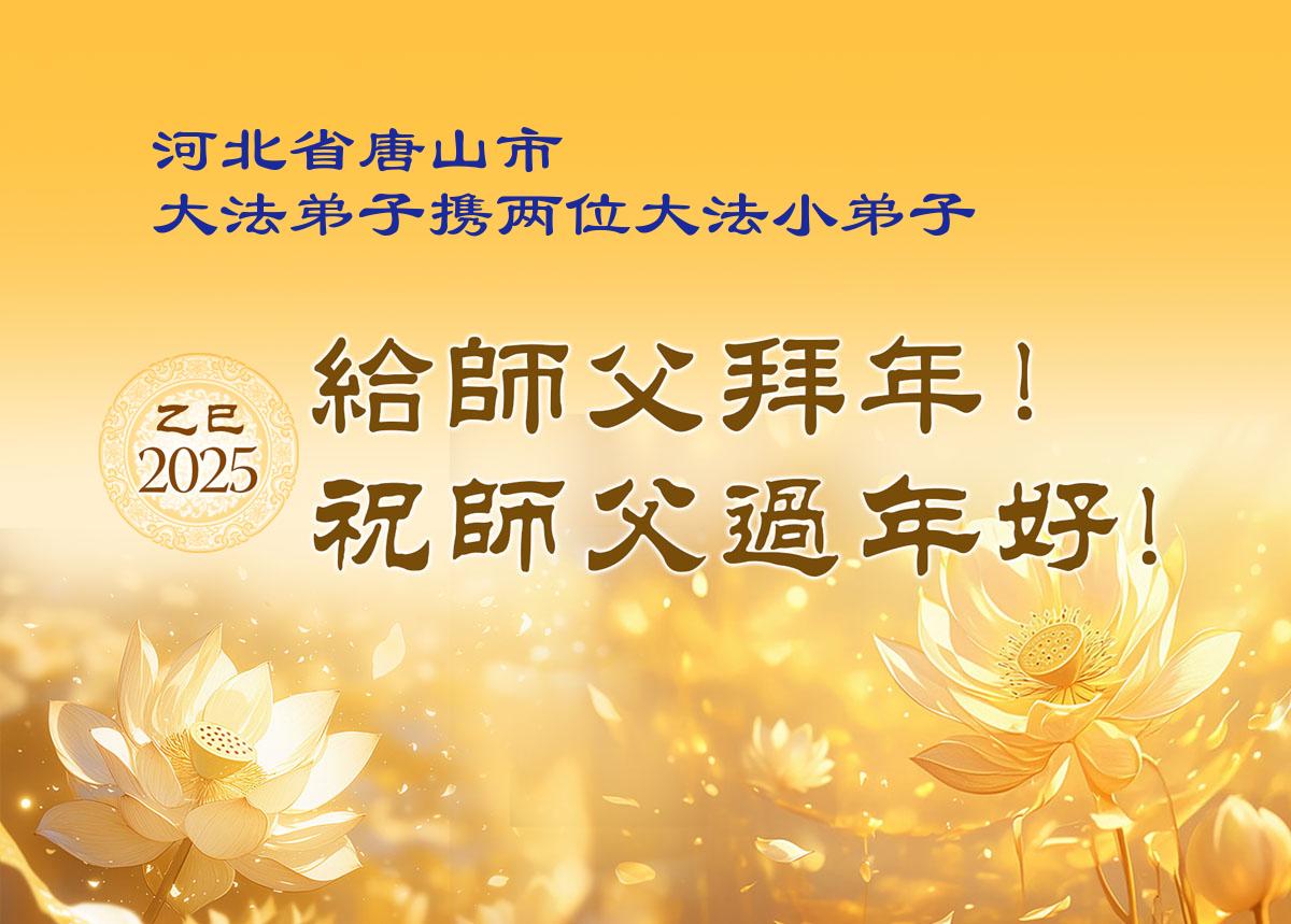 感恩师尊在弟子迷茫时点醒弟子,在弟子难中拉着弟子,弟子做的差,但是弟子无比感恩师尊一直没有放弃弟子!2025年弟子要做的更好,不让师尊操心,带好小弟子!感恩师尊,恭祝师尊2025新年快乐! 河北省唐山大法弟子携两位大法小弟子敬上 二零二五年一月十三日 山东省枣庄一大法小弟子恭祝师尊新年快乐!