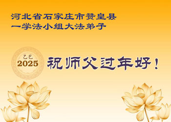师父过年好!恭祝师父新年快乐!无论国内、国际形势如何变化,坚信大法、坚信师父是根本,弟子牢记师父教导,多学法、学好法,明白法理是基础、是关键、是保障。 河北省石家庄市平山县一学法小组大法弟子敬上 二零二五年一月二十二日 河北省石家庄市赞皇县两名大法弟子恭祝师尊新年好!