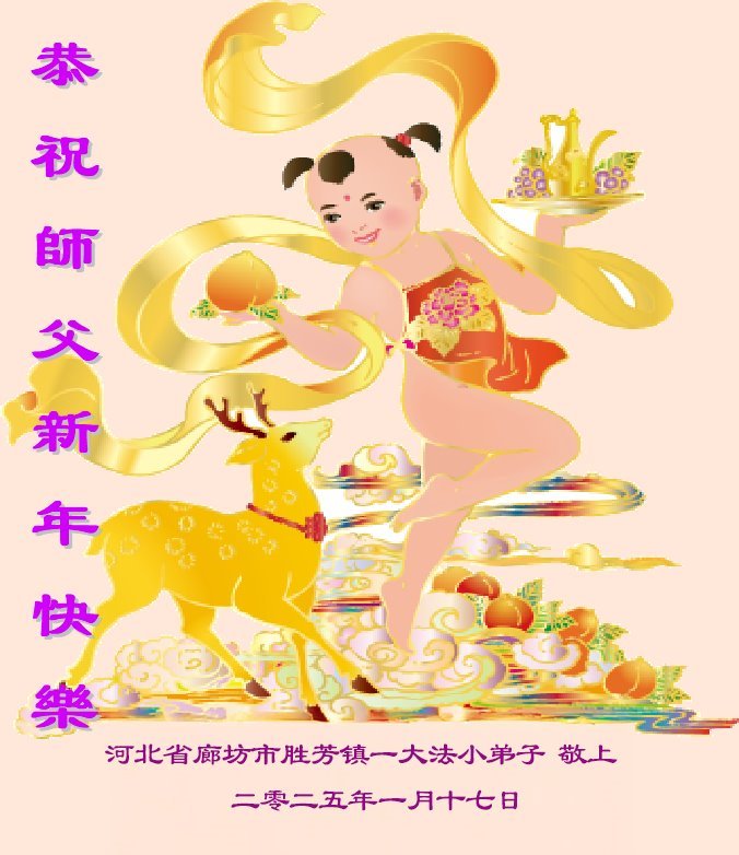 恭祝师父新年快乐! 河北省廊坊市胜芳镇一大法小弟子敬上 二零二五年一月十七日 山东省潍坊市临朐县大法小弟子恭祝慈悲伟大的师尊新年快乐!
