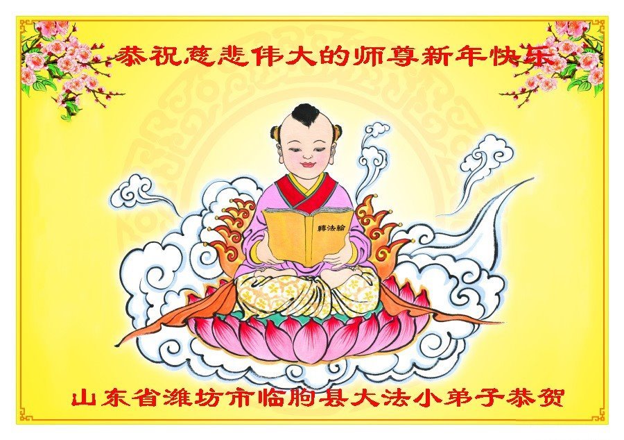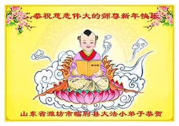恭祝慈悲伟大的师尊新年快乐! 山东省潍坊市临朐县大法小弟子敬上 山东省青岛市莱西市一位大法小弟子恭祝师父新年快乐!