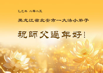 在新的一年里,小弟子一定按照大法真、善、忍去做,修好自己,跟师父回家。 黑龙江省哈尔滨市阿城区大法小弟子恭祝师尊新年快乐!