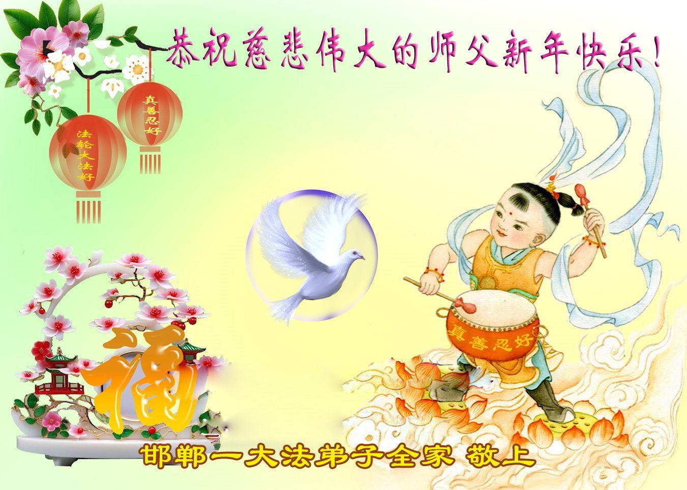 恭祝师尊新年快乐! 河北邯郸一九旬大法弟子敬上 河北邯郸一大法弟子全家恭祝师尊新年快乐!