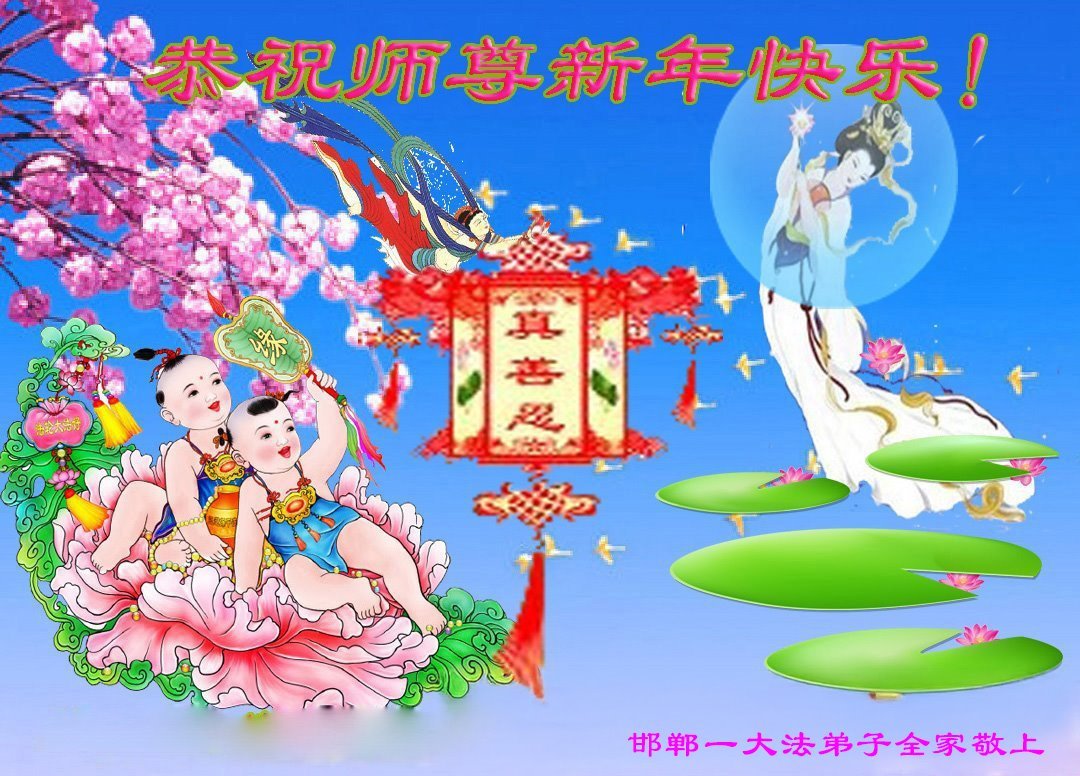 恭祝师尊新年快乐! 河北邯郸一大法弟子敬上 河北邯郸一大法弟子全家恭祝师尊新年快乐!