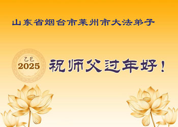师父过年好!您辛苦了!弟子一定坚定实修,做好三件事,多救人,兑现誓约,跟师父回家。 山东省烟台市莱州市大法弟子恭祝慈悲伟大的师尊新年快乐!