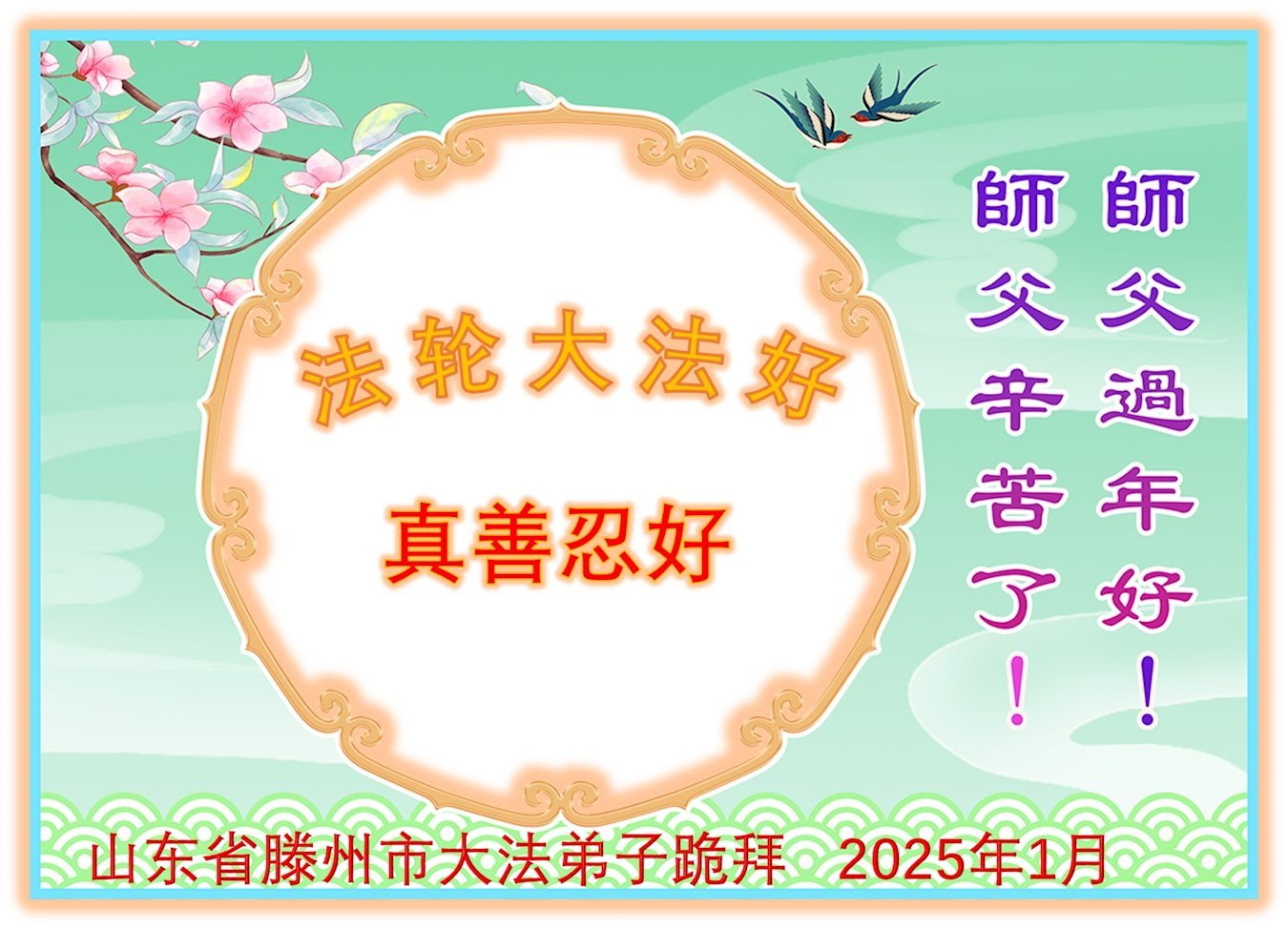 【明慧网二零二五年一月三十日】 山东省威海市一学法小组大法弟子恭祝师尊过年好!