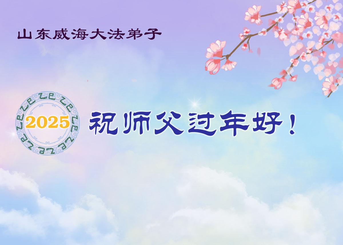 恭祝师父新年好!师父您辛苦了。感恩师父的慈悲救度。 山东省烟台市海阳市一学法小组大法弟子敬上 二零二五年一月二十二日 山东威海大法弟子恭祝师尊过年好!