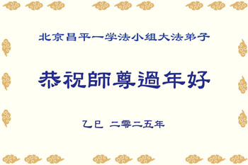 敬祝师尊过年好! 北京昌平一学法小组全体弟子敬上 北京丰台区一老年大法弟子恭祝师父新年好!
