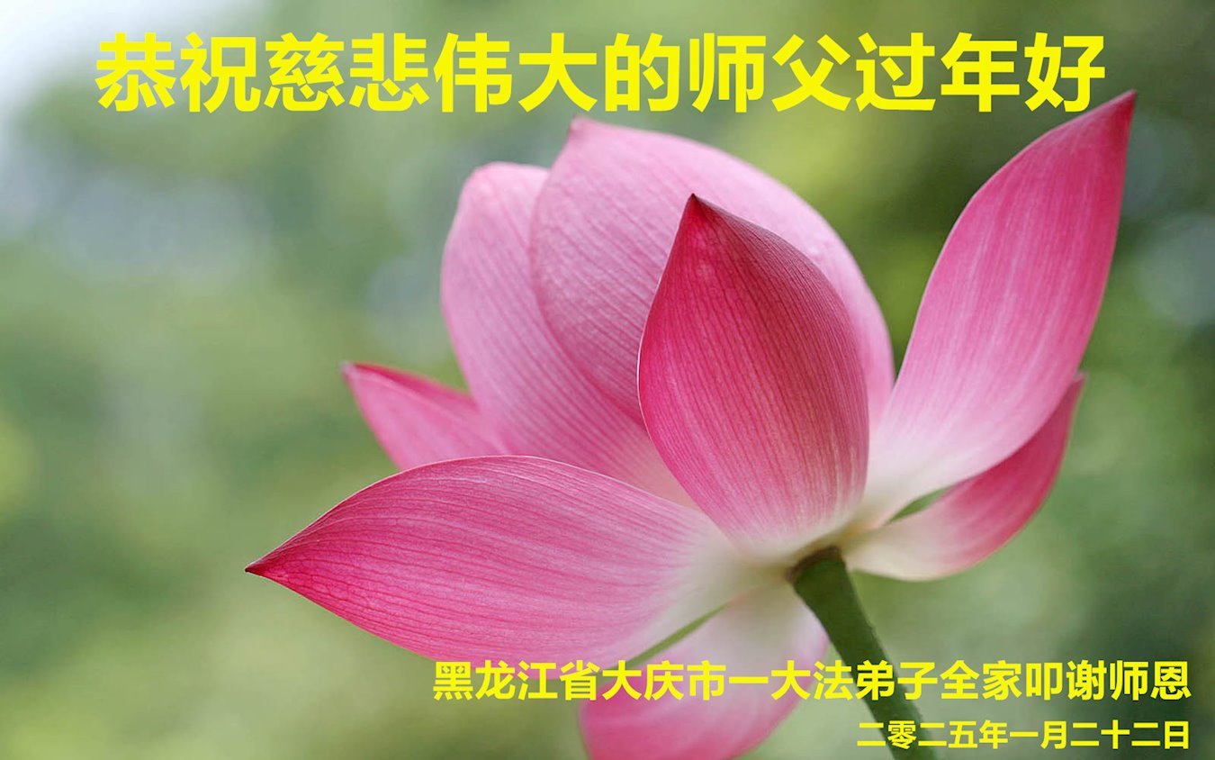 有幸得法沐师恩,二十余载益身心。 羞愧未达精進度,确倍感您威德真。 末世魔多邪灵乱,师挽狂澜苍宇新。 新年恭将贺卡献,叩拜师尊无量恩! 黑龙江大庆红岗区大法弟子 二零二五年一月二十六日 黑龙江大庆市开发区大法弟子恭祝慈悲伟大的师尊过年好!
