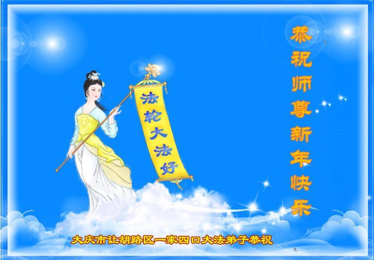 恭祝慈悲伟大的师父过年好! 弟子全家叩谢师恩。 黑龙江省大庆市一大法弟子全家敬上 黑龙江省大庆市让胡路区一家四口大法弟子恭祝师尊新年好!