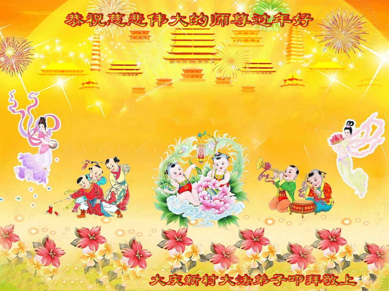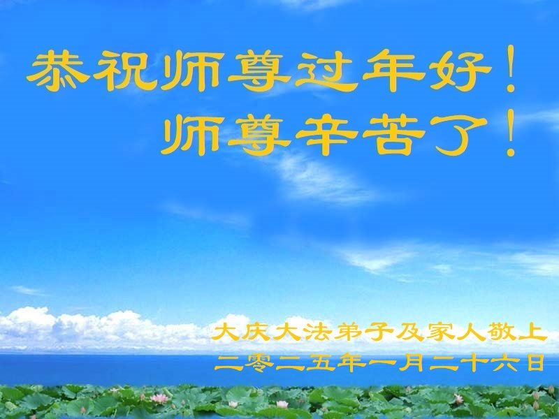 在中国的大年来临之际,给师尊拜年!祝师尊新年好!谢师尊的救度之恩! 黑龙江省大庆大法弟子及家人恭祝师尊过年好!