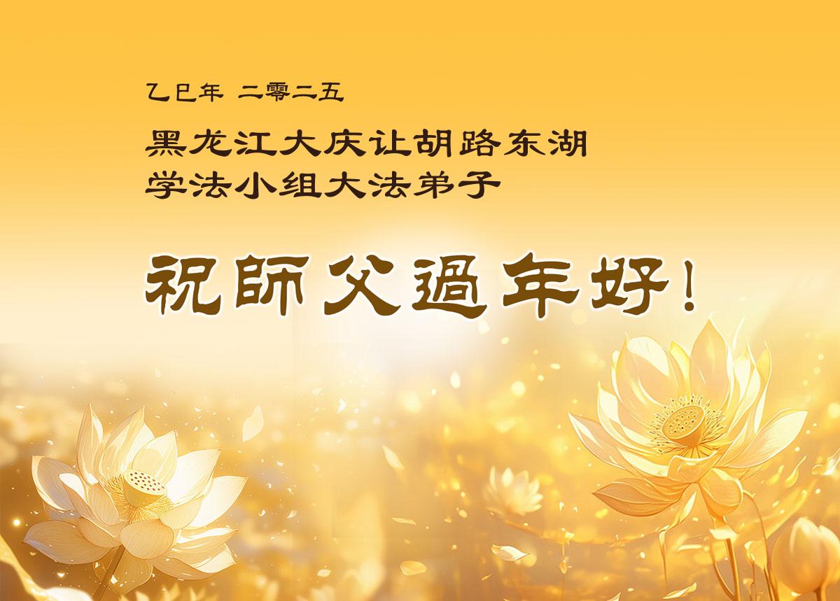 恭祝师尊新年快乐!弟子感谢师尊慈悲苦度! 黑龙江大庆让胡路东湖学法小组大法弟子敬上 二零二五年一月二十二日 黑龙江大庆二区全体大法弟子恭祝师尊新年快乐!