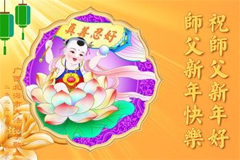 恭祝慈悲伟大的师尊新年快乐! 广西南宁一位大法弟子敬上 广西桂林大法弟子恭祝师父新年好!师父新年快乐!