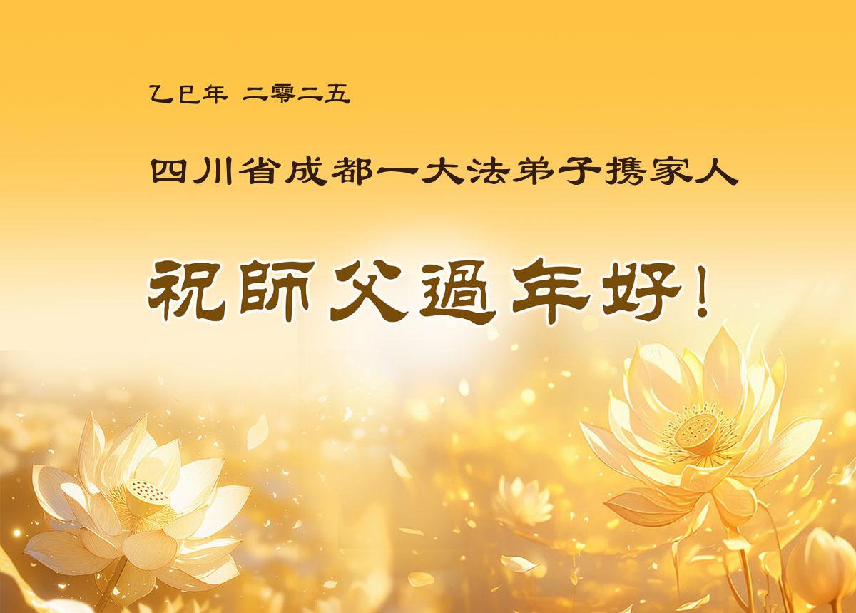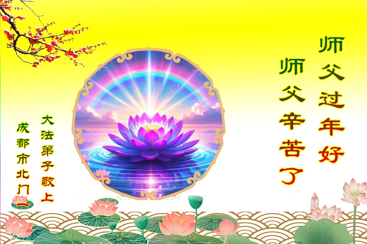 恭祝慈悲伟大的师父新年好! 四川成都一体制内退休的女大法弟子敬上 二零二五年一月二十二日 四川成都大法弟子恭祝师父新年快乐!