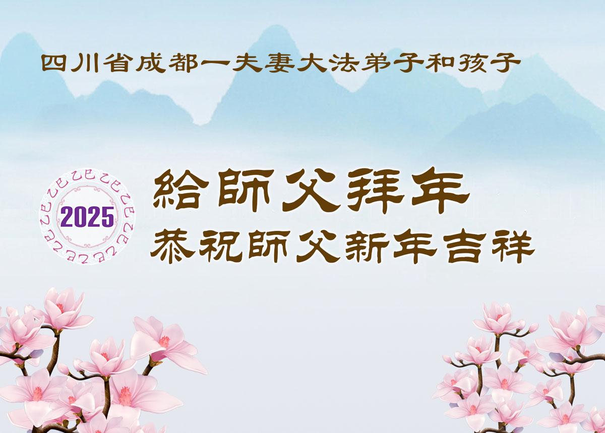 恭祝慈悲伟大的师尊过年好! 四川省成都一夫妻大法弟子和孩子敬上 二零二五年一月二十二日 四川省成都一刚修炼的大法弟子恭祝慈悲伟大的师尊新年好!