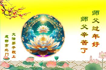 恭祝师尊新年快乐! 四川省成都市彭州市三名大法弟子及家人敬上 四川省成都市都江堰市一大法弟子全家恭祝慈悲伟大的师尊新年快乐!