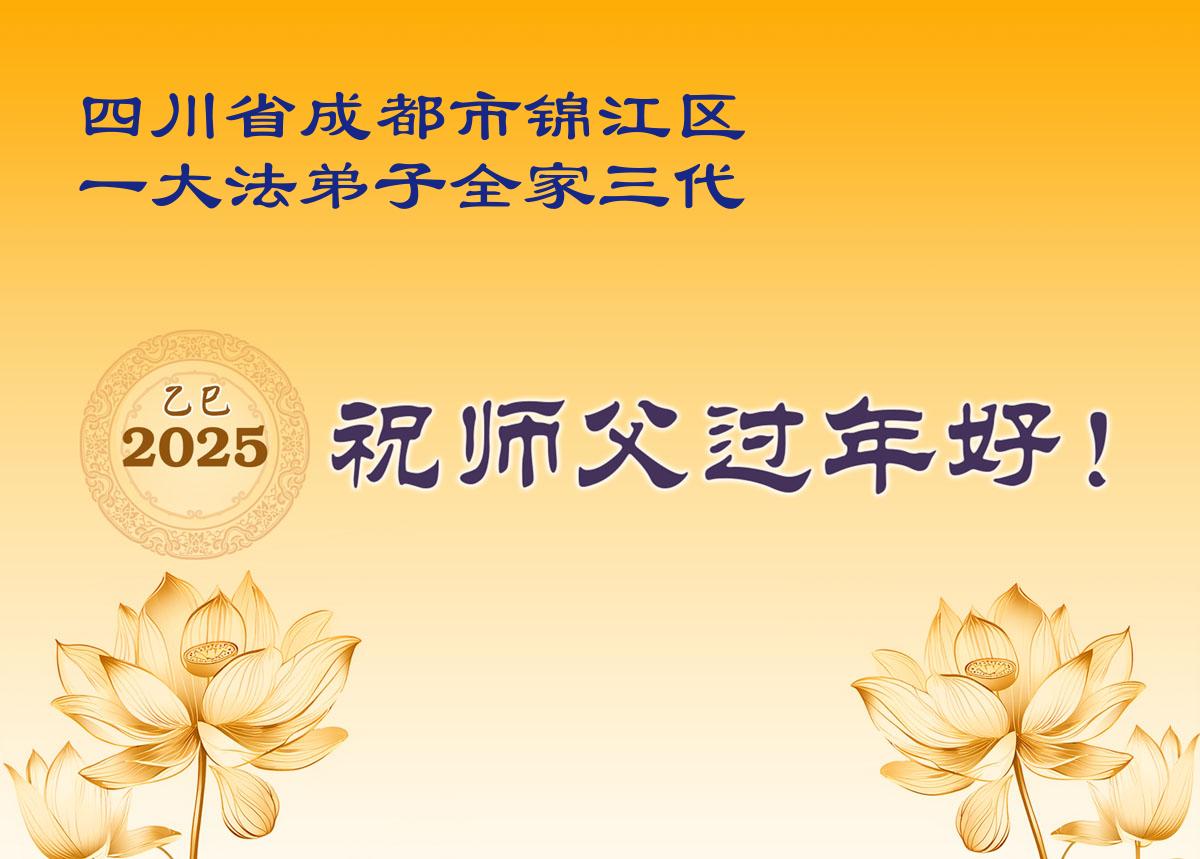【明慧网二零二五年一月三十日】 四川省成都一大法弟子携家人恭祝慈悲伟大的师尊新年好!