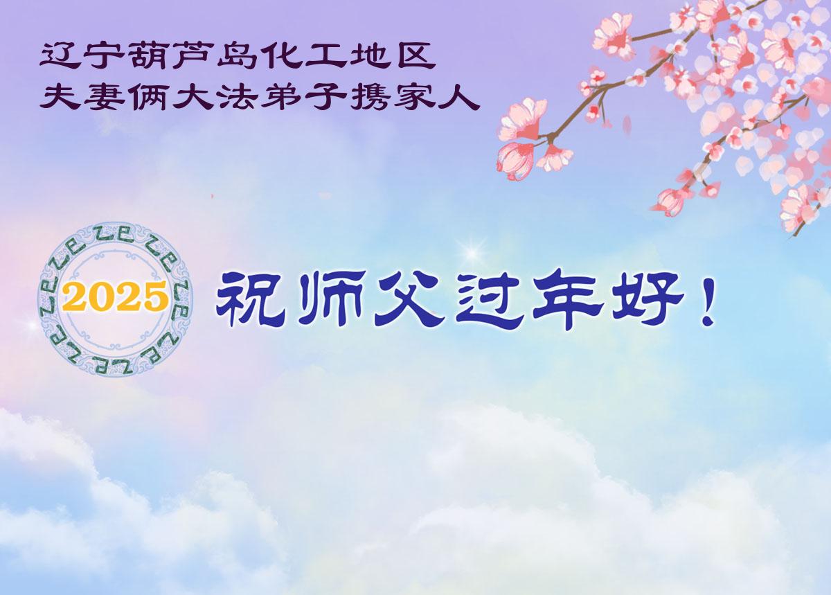【明慧网二零二五年一月三十日】 辽宁葫芦岛化工地区夫妻俩大法弟子携家人恭祝师尊过年好!您辛苦了!