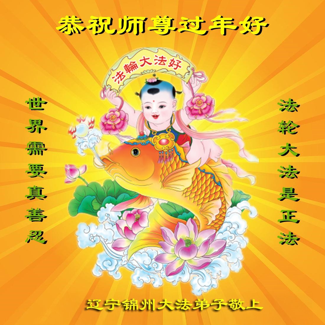 恭祝师尊大年快乐!师尊您辛苦了! 辽宁锦州大法弟子敬上 辽宁锦州大法弟子恭祝师父过年好!