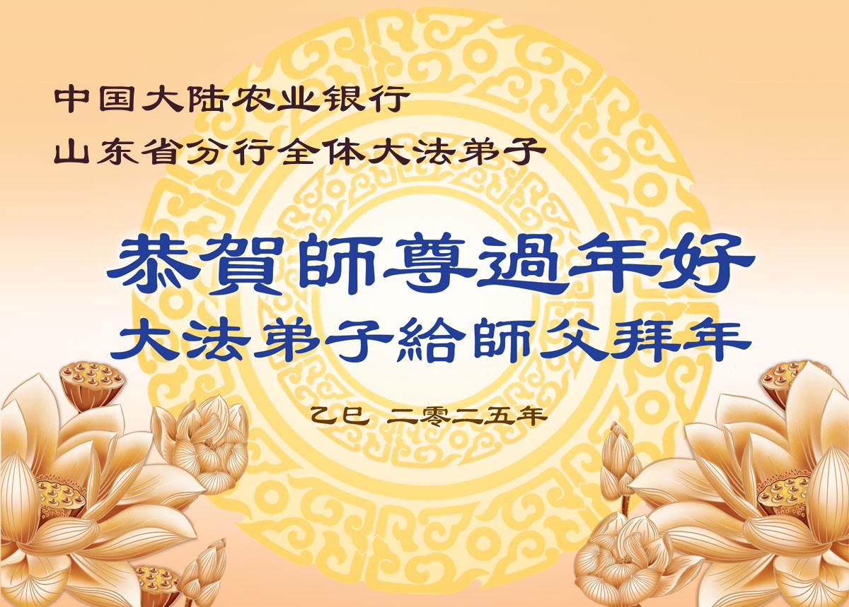 在2025年中国新年即将到来之际,弟子们给师父拜年了! 我是来自西安一电力公司的大法弟子,和周围的弟子们一起给慈悲伟大的李洪志师尊拜年,恭祝师尊新年快乐!感恩师尊在我们修炼的路上一路看护着、引领着我们,我们一定会做好三件事,精進实修,修好一思一念,多救人,与师回家。叩拜师尊:一叩首、再叩首、三叩首。真是三生有幸能成为师尊的弟子,感恩、感恩、再感恩师尊! 西安一电力公司大法弟子敬上 二零二五年一月二十六日 中国农业银行山东省分行全体大法弟子向伟大慈悲的师尊跪拜,祝师尊新年快乐!