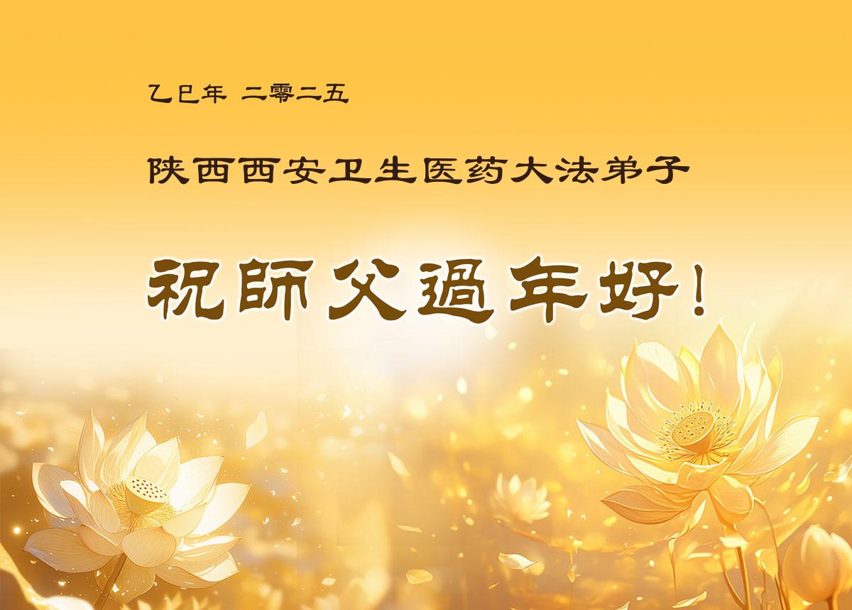 在新年到来之际,我们怀着无限感恩之心,恭祝慈悲伟大的师尊过年好! 师父辛苦了!在新的一年,我们将一如既往,做好三件事,努力精進,不辜负师父慈悲救度之恩! 中国工商银行一大法弟子敬上 二零二五年一月二十五日 陕西西安卫生医药系统大法弟子恭祝师尊新年快乐!